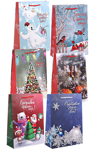 16/XA26.1 Сумка-пакет бум. полубол.- нов.год микс 12/бл